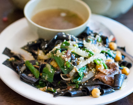 Eel rolls were good. Squid Ink Noodle with Lamb and Harissa Yogurt. Also good.